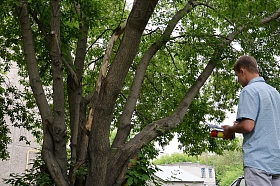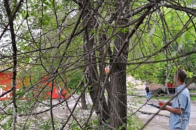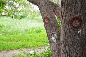 В ходе обследования территории было выявлено три породы деревьев: карагач, клён и тополь. Омолаживающей обрезке подлежат 19 из них, сносу – четыре. Стоит отметить, что снос идёт круглый год за исключением периода сокодвижения с 20 апреля по 20 августа. Процедуре подлежат аварийные сухие насаждения, с уклоном по отношению к земле более 30 градусов, а также дерево с морозобоиной – трещиной от переизбытка влаги.