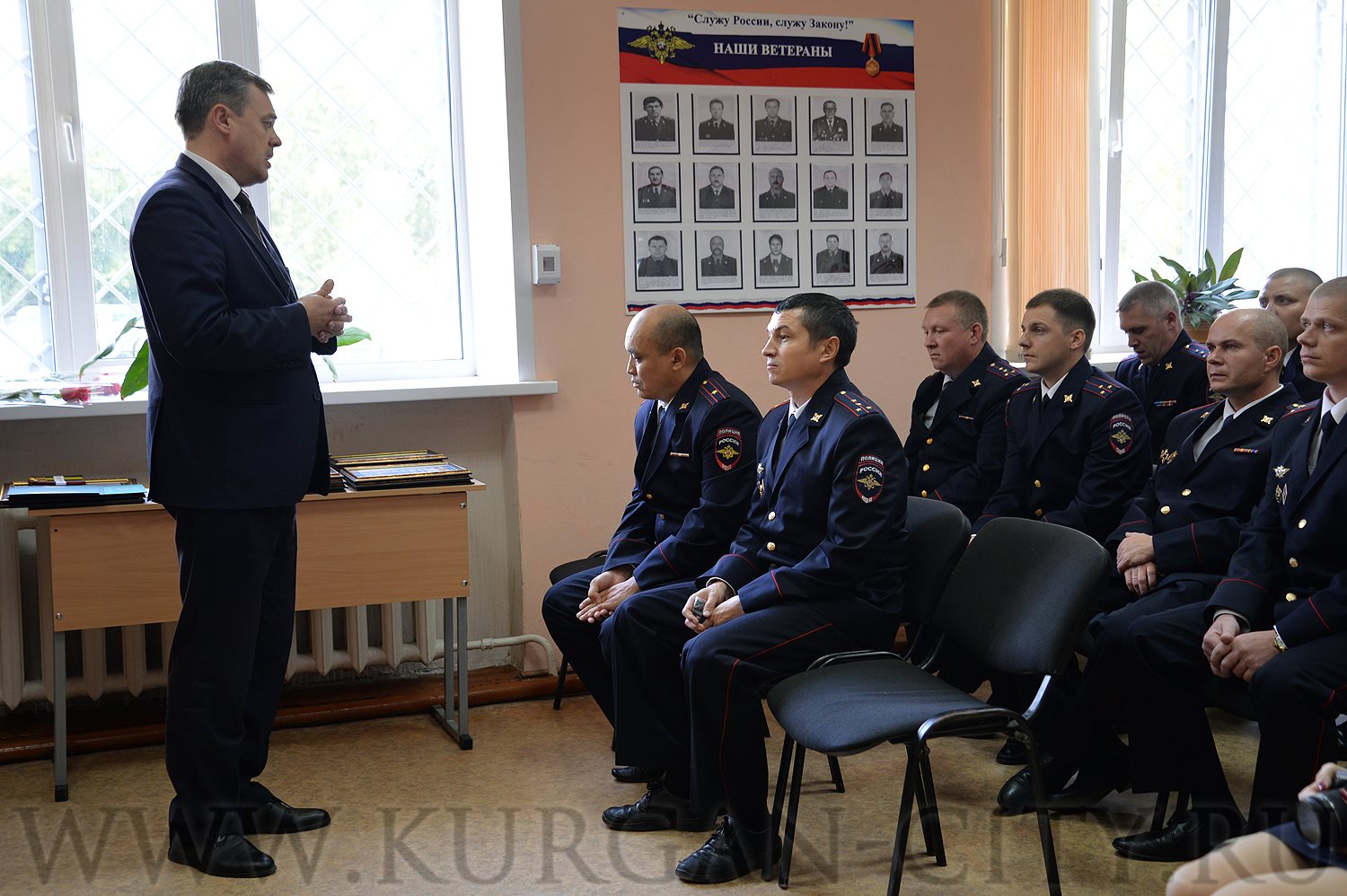 На торжественном собрании по случаю юбилея ППС присутвовали ветераны службы, а также родители отличившихся молодых сотрудников данного подразделения. Во время официальной части отмечалось, что преувеличить роль патрульно-постовой службы полиции сложно. Без участия сотрудников этого подразделения не проходится ни одно мероприятие, где необходимо обеспечить охрану общественного порядка. На любом празднике, футбольном матче или концерте известных артистов обязательно несут службу сотрудники патрульно-постовой службы. Ежедневно они охраняют покой курганцев на улицах города.