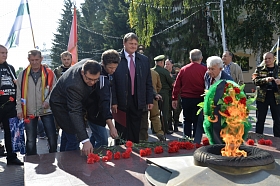В память о мужестве и героизме советских воинов, воевавших на полях сражений Великой Отечественной войны, участники мероприятия возложили венки и цветы к Вечному огню Мемориала Славы. Затем была организована концертная программа «Броневой щит Родины», посвященная Дню танкиста.