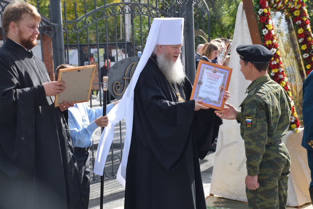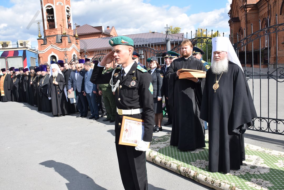 Право открытия церемонии на соборной площади было предоставлено Главе Курганской Митрополии Русской Православной Церкви, Митрополиту Курганскому и Белозерскому Иосифу. В торжественной обстановке он наградил архиерейской стипендией в честь памяти Святого благоверного великого князя Александра Невского лучших кадет и юных казаков города и региона, а также их наставников. К примеру, была отмечена ученица школы № 42 Виктория Каканова - участник смены в военно-историческом лагере им. четырежды Героя Советского Союза Г. К. Жукова «Патриот Зауралья», победительница школьных и городских олимпиад по химии и биологии. Награду также получил Егор Топорищев, кадет Курганского промышленного техникума, который вошел в число призеров областного смотра-конкурса на лучший кадетский класс (группу) в 2017 году. Егор является призером открытого первенства Курганской области по пятиборью спасателей в закрытых помещениях «Юный спасатель», регионального этапа военно-патриотической игры «Зарница».