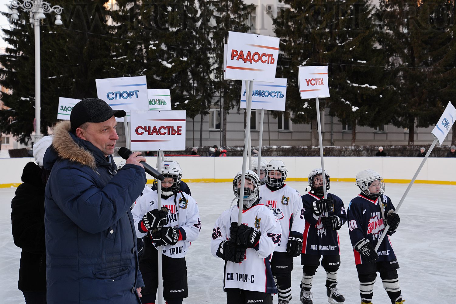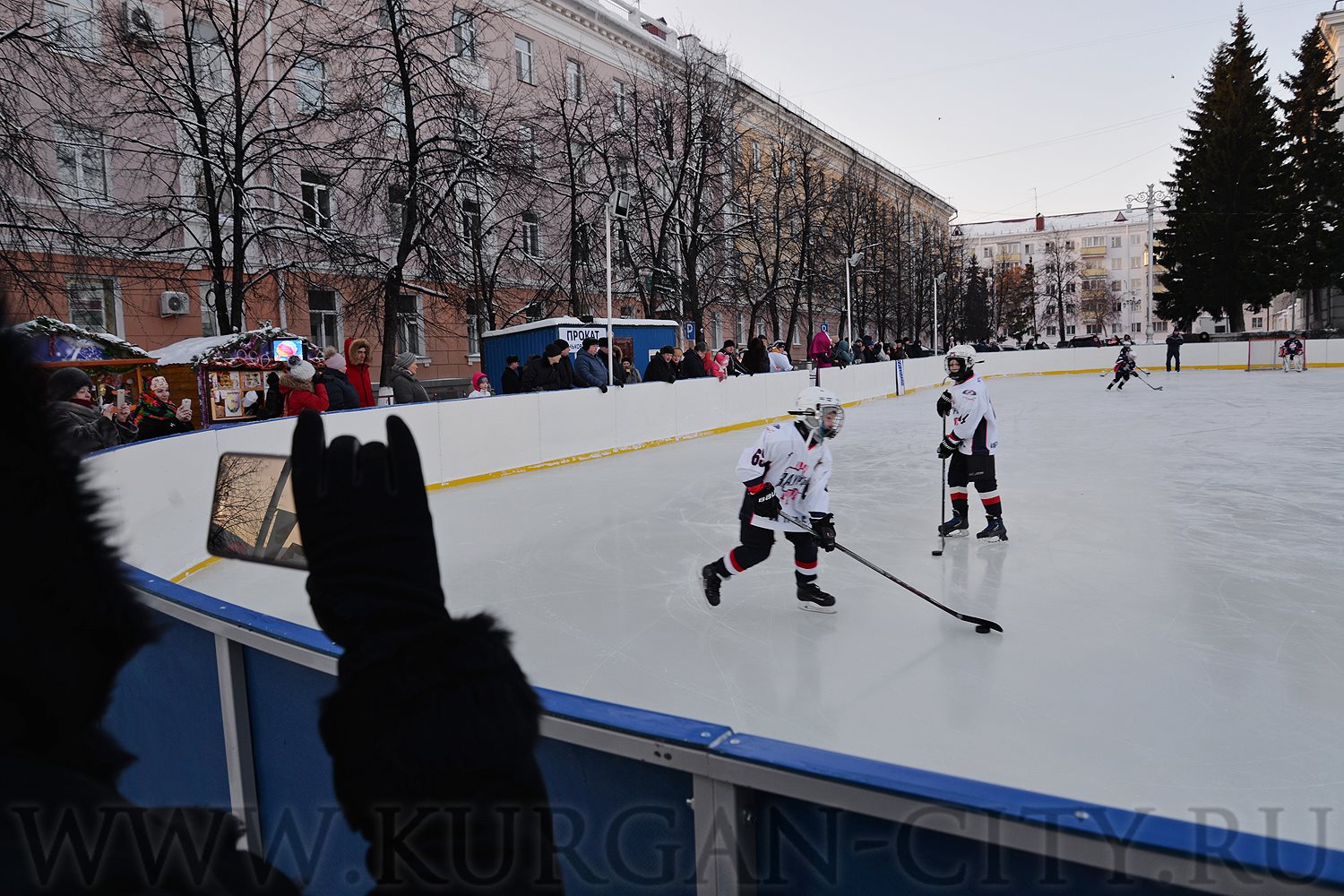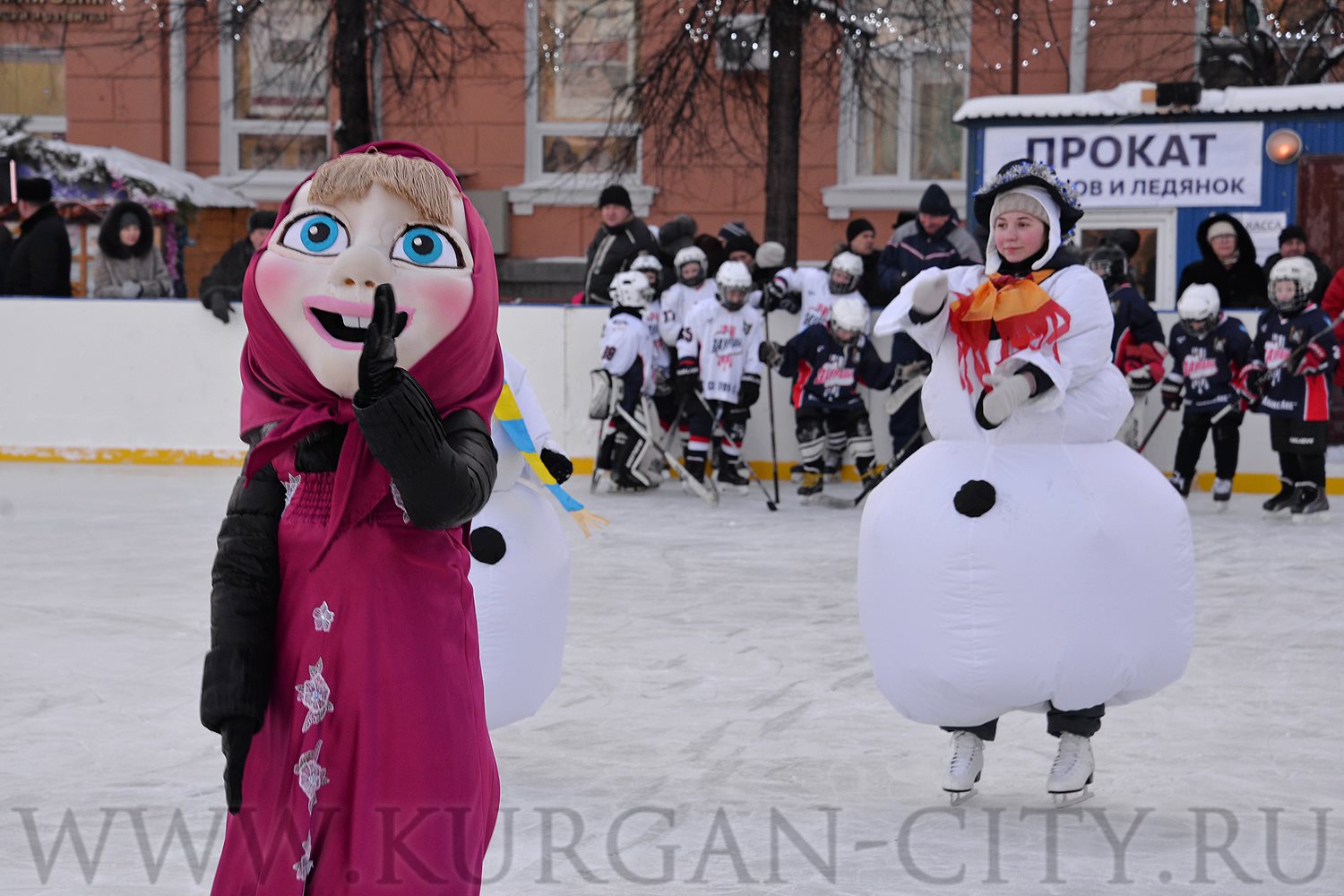 Несмотря на морозную погоду, юные фигуристы исполнили на льду танцевальные номера и продемонстрировали свое мастерство. Первыми лед опробовали ребята из группы «Акварель» Федерации фигурного катания на коньках Курганской области Семен Котельников и Ева Хлызова. Они красиво и грациозно на льду исполнили творческий номер. Затем на лед вышли хоккеисты команды «Зауралье» Детско-юношеской спортивной школы № 6 города Кургана, занимающиеся под руководством тренера Александра Феоктистова. Юные курганцы ловкими и быстрыми движениями забивали шайбу в ворота. Продолжением праздника стало выступление творческих коллективов Курганской области.