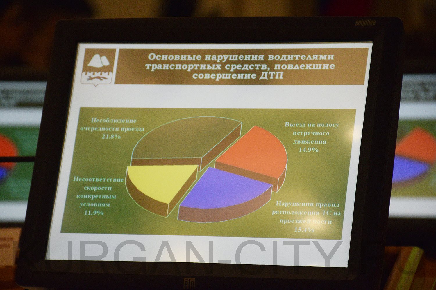 Докладывая о реализации мероприятий по сокращению аварийности на территории города Кургана, Руководитель Администрации города Андрей Потапов отметил, что в 2018 году в Кургане проведены работы по обеспечению отдельной фазы для движения пешеходов на всех светофорных объектах, где ранее она не была предусмотрена (для этого привлекалась специализированная организация ООО «Град Проект», г. Омск). Введены в эксплуатацию светофорные объекты на перекрестках пр. маршала Голикова – ул. Илизарова, ул. Кирова – ул. М. Горького, а также на пр. Голикова, в районе остановки общественного транспорта «КЦ «Современник».
