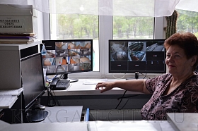 В рамках осмотра здания гимназии участники объезда посетили театральный зал, который в настоящее время тоже ремонтируется. Здесь, по словам директора учреждения, дети выступают с представлениями и другими творческими номерами. Шла речь и о доступности здания для маломобильных групп населения. Уточнялось, что для удобства перемещения людей с ограниченными возможностями здоровья пандусы оборудованы не только снаружи, но и внутри здания. Участники выездного совещания также оценили работу системы видеонаблюдения, где по периметру и внутри помещений гимназии установлено порядка 40 камер.