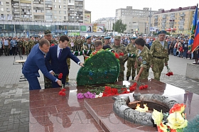 По окончании мероприятия к Мемориалу войнам-зауральцам, погибшим в локальных войнах и военных конфликтах во второй половине XX века, была возложена памятная гирлянда, венки и цветы.