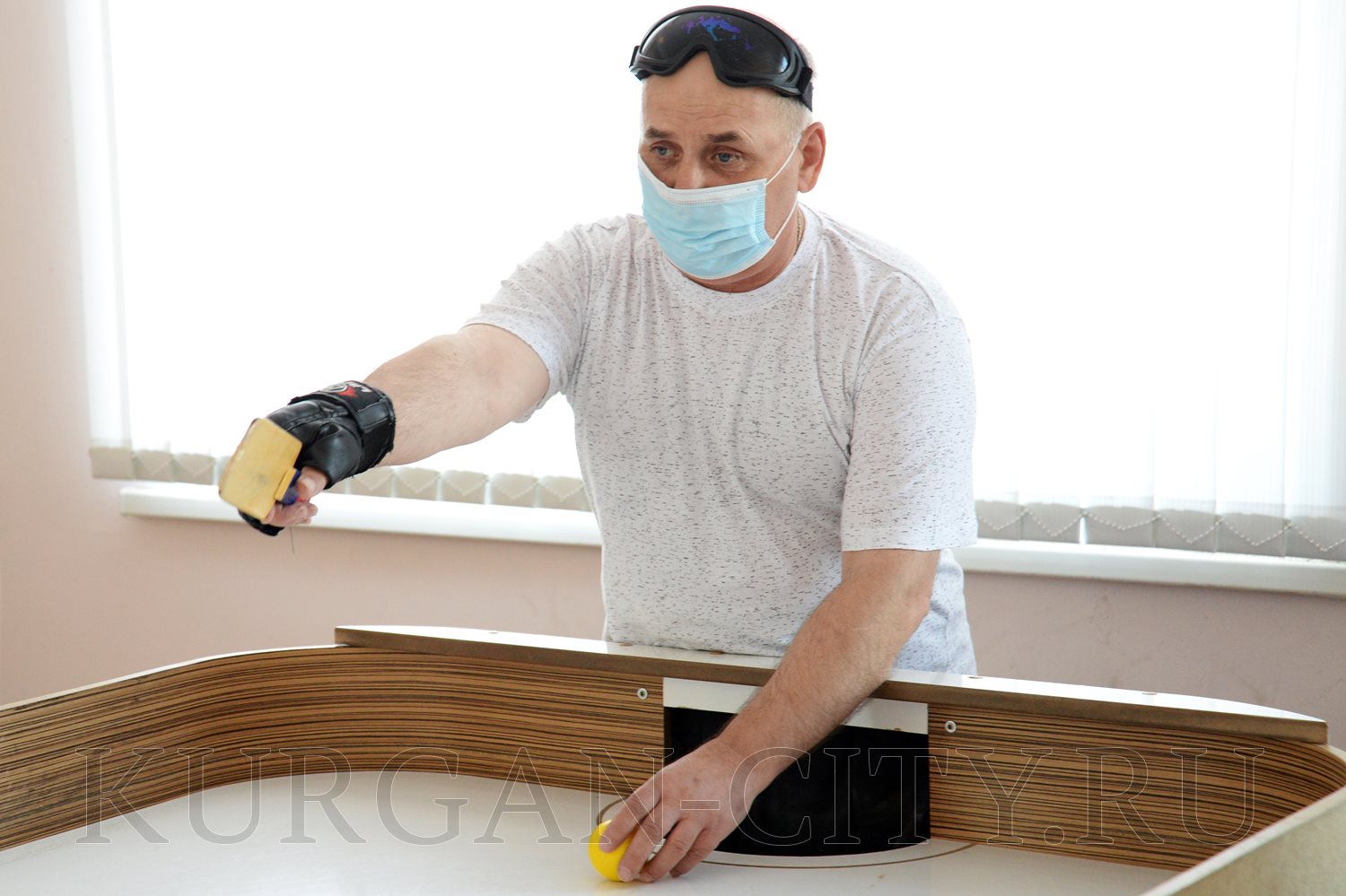 Тренировки проходят за специальным столом для игры в шоудаун - настольный теннис для незрячих. Он был приобретен в 2018 году на средства меценатов при содействии Главы города Кургана Андрея Потапова. Стол имеет определенную конструкцию с бортами по бокам и разделительной доской вместо сетки. Спортсмены играют звуковым шариком, который позволяет определить его местоположение на слух. Каждый игрок оснащен прямоугольной ракеткой, перчатками и специальными темными очками. Этот обязательный атрибут спортивной формы позволят всем участникам – полностью слепым или с остаточным зрением - играть в равных условиях. «Стол у нас не простаивает, тренируемся усиленно. Среди наших спортсменов есть призеры Чемпионатов России, в прошлом году успешно выступили на открытом Кубке Содружества независимых государств в городе Кумертау Республики Башкортостан. Этой осенью вновь состоится Чемпионат России, поэтому надо готовиться», - продолжил Александр Павлович.