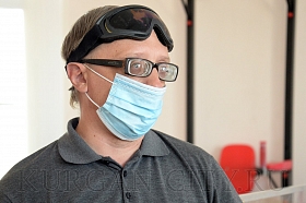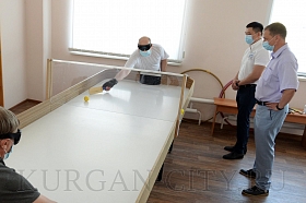Сегодня Глава города Андрей Потапов посмотрел как курганцы, имеющие ограничения по здоровью, не только работают, но и занимаются спортом. В спортивном зале Курганской местной организации Всероссийского общества слепых, который также располагается в здании по улице Декабристов, 3, после самоизоляции возобновились тренировки по настольному теннису. Они проходят строго в соответствии с рекомендациями Роспортебназдора. Как рассказал председатель Курганской МО ВОС Александр Мельников, спортсмены приходят через день по 2-3 человека. Помещение и инвентарь регулярно обрабатываются дезинфицирующими средствами.
