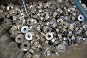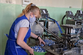 Дополнительно ООО «Курганское производственное предприятие «Зауралье» выпускает укупорочную продукцию для ОАО «Акционерное Курганское общество медицинских препаратов и изделий «Синтез». Комбинированные колпачки, предназначенные для укупорки лекарственных препаратов, собирают вручную в специальном цехе. Работники сидят за общим столом и ловко совершают необходимые манипуляции, соединяя алюминиевый колпачок и пластмассовую крышку. Всего несколько секунд и колпачок готов. Таких изделий каждый должен собрать 7200 штук, но, как отметил Павел Викторович, норма перевыполняется в среднем на 20-30%.