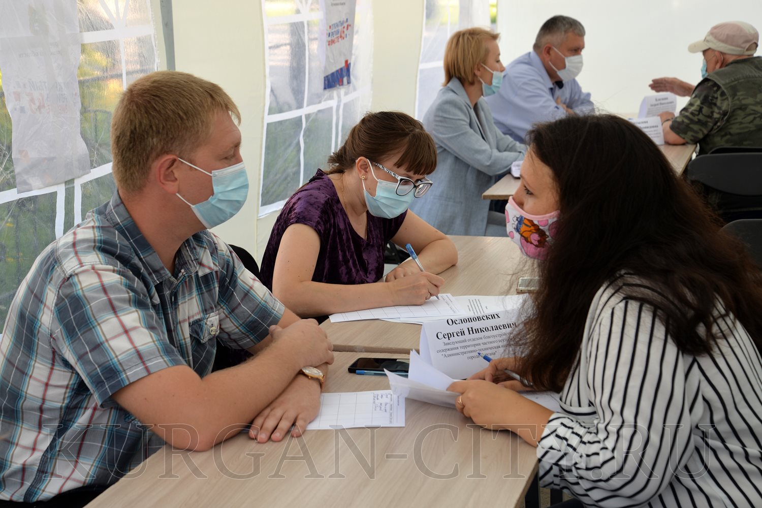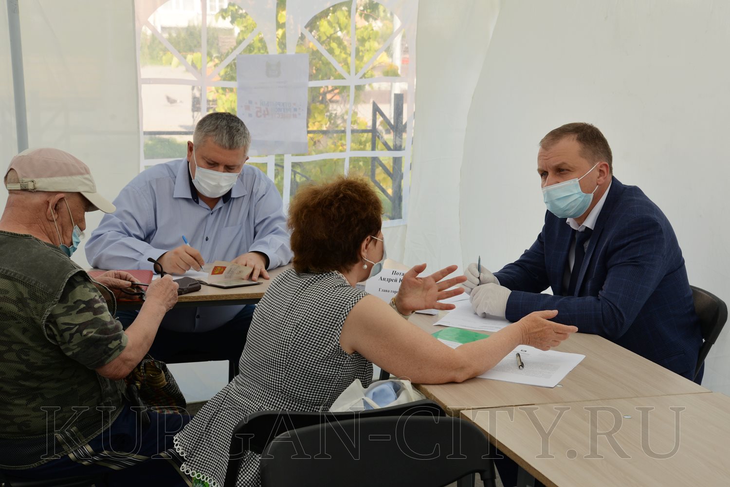 Для удобства жителей Кургана специальные палатки для приема граждан работают в разных микрорайонах города с соблюдением всех требований Роспотребнадзора. Курганцам измеряют температуру тела, обрабатывают руки антисептиком, выдают маски. Эти же меры соблюдают специалисты, которые проводят консультации. Информация о приемных днях и графиках работы размещается на сайте МО город Курган, в официальных группах в соцсетях и СМИ.