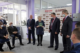 Глава города Кургана Андрей Потапов, приветствуя коллектив типографии «Дамми», поблагодарил их за совместную работу. Сотрудничество Администрации города с «Дамми» продолжается уже многие годы. Из наиболее значимых объектов, выполненных в этом году в партнёрстве с типографией, Андрей Юрьевич отметил Аллею Героев в парке Победы – проект городского Совета ветеранов, который победил в конкурсе Фонда президентских грантов, а также арт-объект «Мы создаем современный Курган!». Конструкцию с фотоколлажем длиной 21 метр и высотой 3 метра с видами города установили на пересечении улиц Половинской и Гоголя.