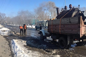 Как доложил заместитель директора департамента развития городского хозяйства Сергей Герасименко, в рамках противопаводковых мероприятий в Кургане, в отдаленных микрорайонах, подверженных внутреннему подтоплению, ведется вывоз снега, пропарка отогрев и пропарка водопропускных труб, канализации. Дорожники работают в Восточном, Западном, Рябково, Кулацком. Вчера снег убирали на улицах Халтурина, Новая, Павлова, 7-я и 4-я Больничная, в переулке Просветский. В ночную смену проведены работы на улице Гагарина; снег также вывезен с Урожайной, Карбышева, Пугачева, С. Юлаева, проспекта Машиностроителей. Паровой котел работал поадресно на улицах Садовая, ул. Кузнецова и Ползунова. В микрорайоне ТЭЦ, на улицах Сеченова, Орджоникидзе, по Мало-Чаусовскому переезду и на Бульваре Мира велась откачка воды.