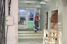 В пристрое в 5-ом микрорайоне в помещениях наводят порядок. Отмывают от строительной пыли окна, пол; устанавливают мебель. Общестроительные работы на объекте завершены.
