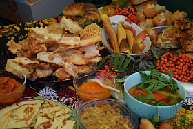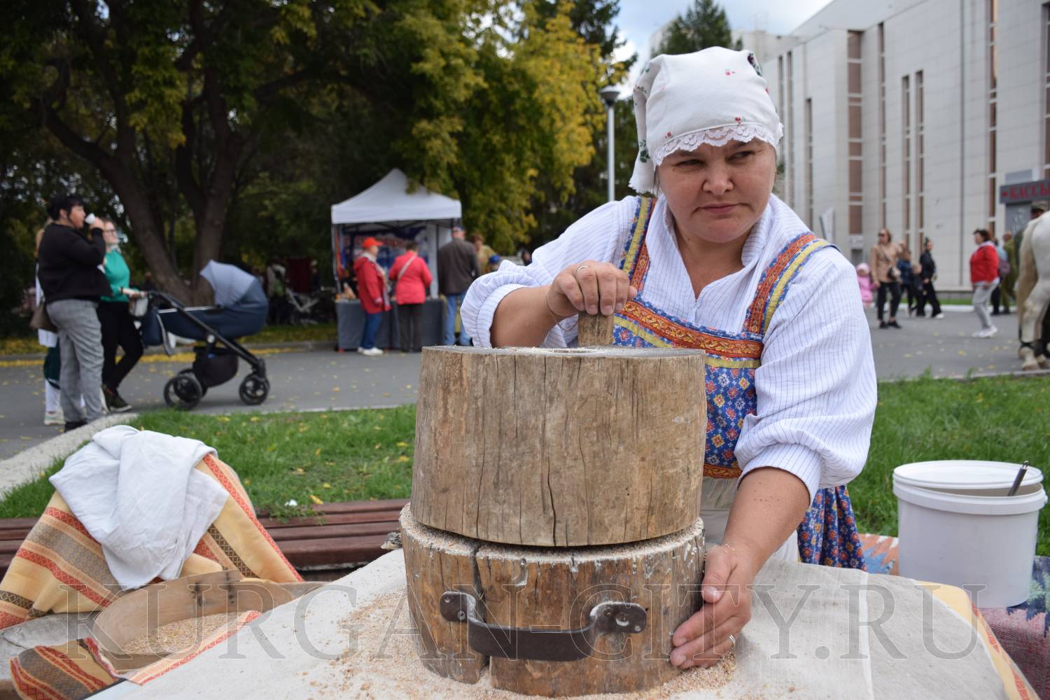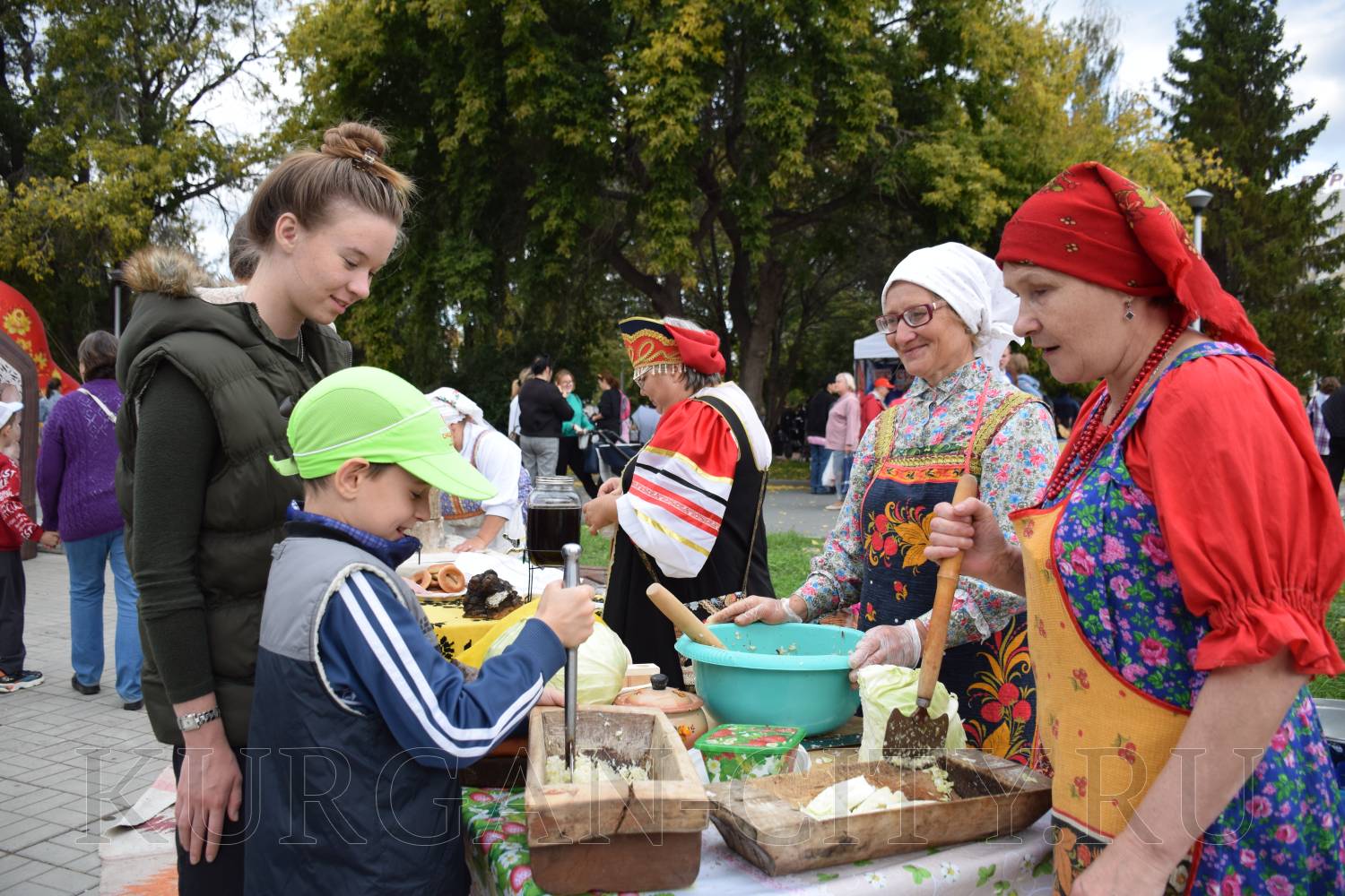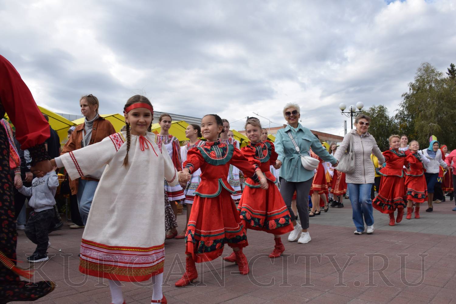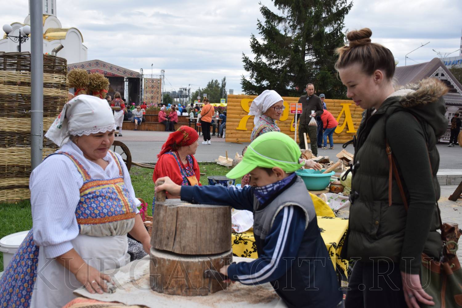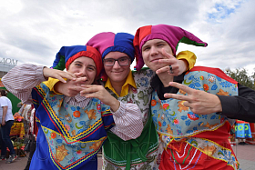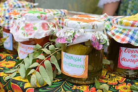 Вокруг курганской филармонии в течение дня работают яркие и красиво украшенные площадки. На площадке «Урожайный ряд» представлены все муниципальные округа Курганской области. Желающие смогут отведать угощения по уникальным рецептам округов. Также на площадке пройдет гастрономический конкурс «Лето в банке», где будут представлены образцы разнообразных солений и варений.
