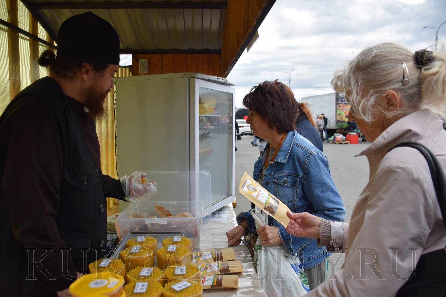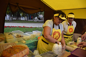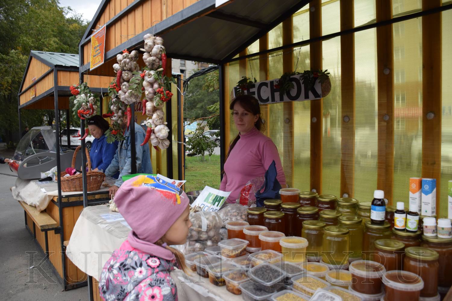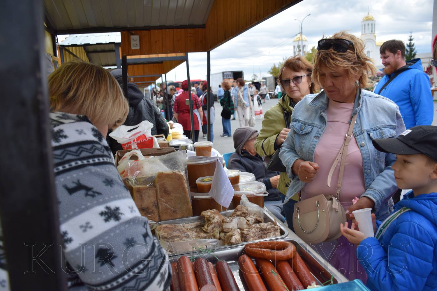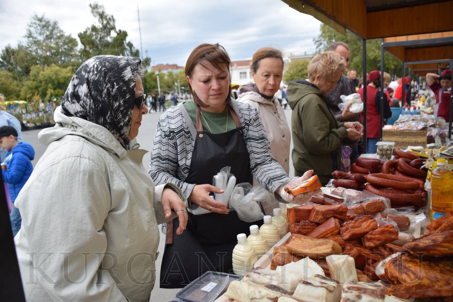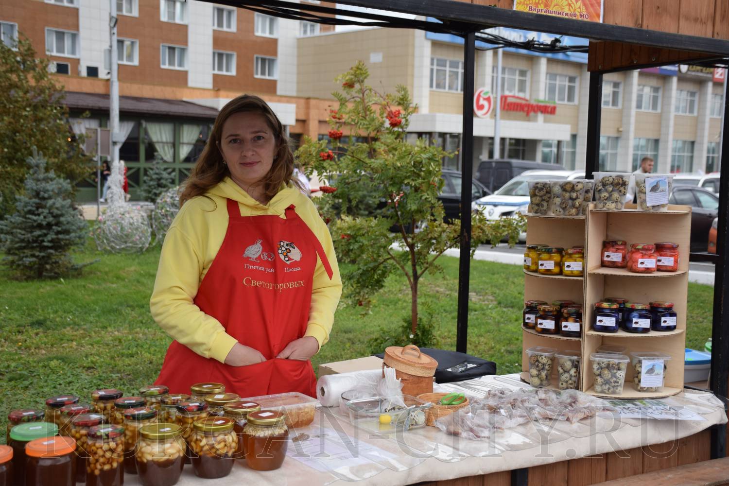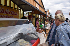 На площадке за Курганской филармонией развернулись масштабная самобытная «Александровская ярмарка». Здесь курганцы и гости города могут приобрести мед, мясную продукцию, хлебобулочные и кондитерские изделия, овощи и фрукты.