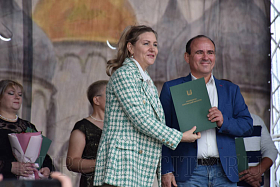 Ко Дню памяти небесного покровителя Кургана - святого благоверного князя Александра Невского в Кургане торжественно открыли Александровскую ярмарку и Александровские дни. Участие в церемонии приняла глава города Кургана Елена Ситникова.