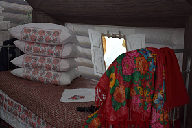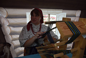 В русской избе мастерицы учат посетителей традиционным женским занятиям: ткачеству на кроснах, плетению поясов и заготовке капусты на зиму. Также каждый здесь может попробовать намолоть муки с помощью настоящих жерновов.