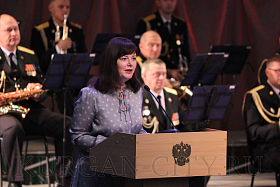 Как подчеркнула Елена Вячеславовна, Курганский пограничный институт ФСБ России по праву считается одним из лучших ведомственных вузов страны и школой настоящих мужчин, где воспитывают будущих защитников Отечества. «Здесь учат любить свою Родину, свой город, чтить традиции, уважать старших по званию», - сказала она. Елена Вячеславовна напомнила, что и в военное время, и в мирные дни пограничники всегда остаются на страже Родины, охраняют государственную границу и первыми принимают на себя удар противника. Она пожелала коллективу, ветеранам и выпускникам Курганского пограничного института ФСБ России крепкого здоровья, счастья и мирного неба над головой.