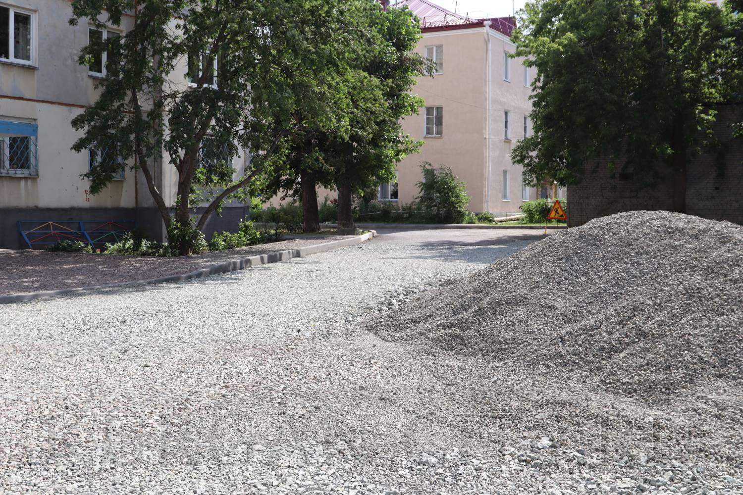 Активно дорожные работы ведутся во дворе по ул. Коли Мяготина, 116 и 118. Подрядчик устанавливает бордюры, укладывает щебень. Работы также не прекращаются и в выходные дни.