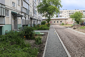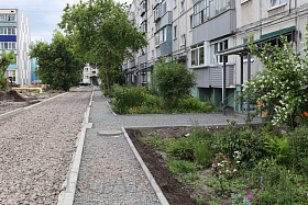 Часть дворов и междворовых проездов будет благоустроена вдоль улицы Коли Мяготина, где в настоящее время идет комплексный ремонт. Так, в районе дома № 195 благоустраиваться территория прилегающего двора. Подрядчик работает без выходных. В настоящий момент на тротуарах и проезжей части уложено щебёночное основание. В ближайшее время будет выполнена расклинцовка мелким щебнем.