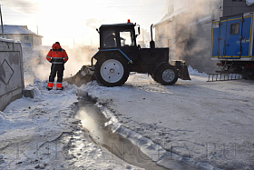 В микрорайоне Рябково глава города проконтролировал, как ведется устранение аварийной ситуации по адресу: ул.Карбышева, 2, где вчера на сетях сторонней организации в районе данного многоквартирного дома образовался засор, а также произошла утечка на сетях холодного водоснабжения, что привело к выходу воды на поверхность и образованию наледи. Сегодня с утра на месте работают бригады «Водного союза», которые устраняют аварийную ситуацию. Отмечалось, что после завершения всех работ будут выполнены мероприятия по уборке наледи.