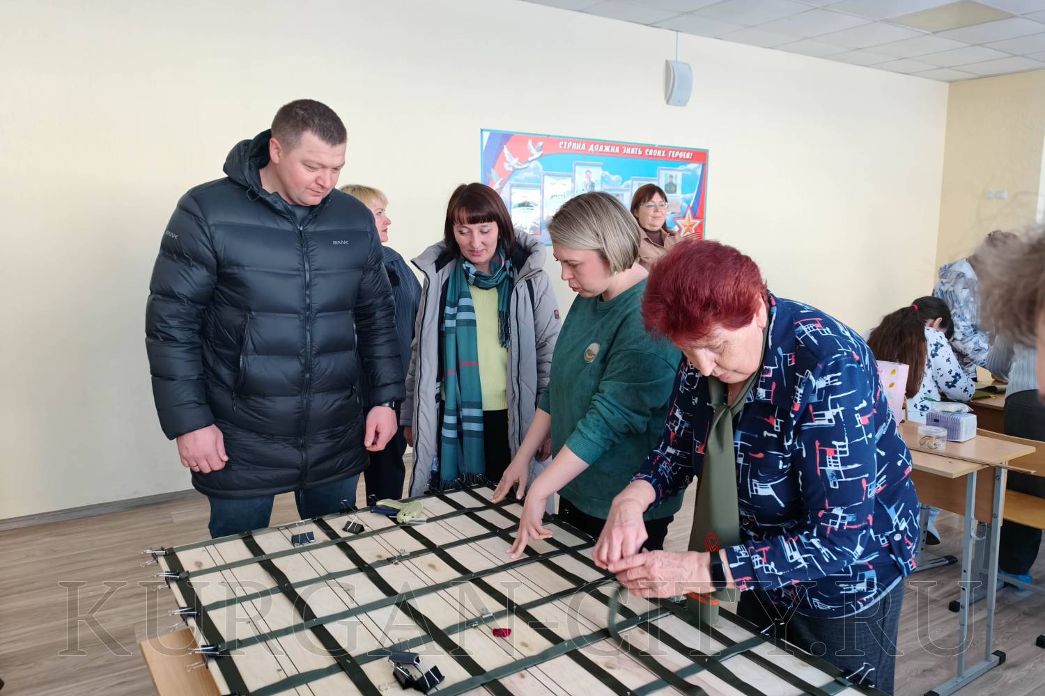 В 11-ой школе участники объезда также посетили школьный музей и познакомились с работой военно-патриотического клуба «Фронтовичка». Его участницы, среди которых учителя, ветераны, школьники, родители и просто жители микрорайона Шевелёвка, активно участвуют в военно-патриотической работе, плетут маскировочные сети, антидроновые шторы, одеяла, невидимые для тепловизоров, браслеты выживания, пояса для сапёров и многое другое, необходимое бойцам на СВО.