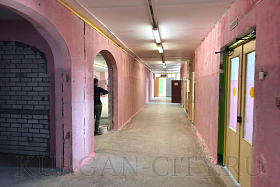 В 7-ой школе, которая тоже ремонтируется по национальному проекту «Молодёжь и дети», в данный момент проводятся демонтажные работы. Строительные бригады снимают старую краску со стен в пищеблоке, гардеробе, раздевалках, коридорах на 1-ом и 2-ом этажах.