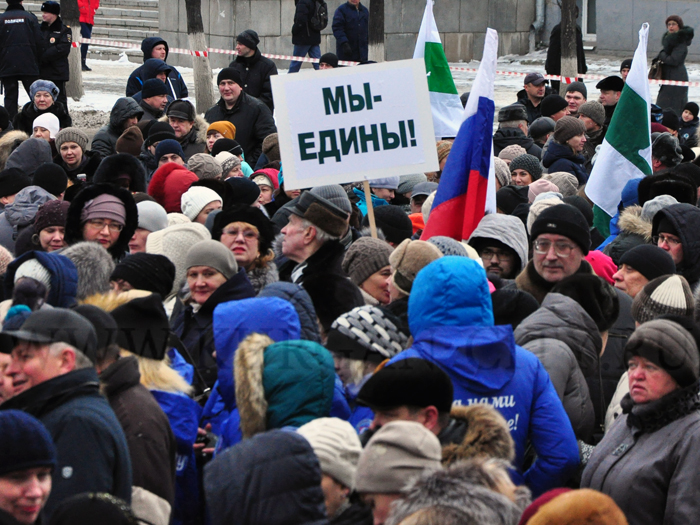 На митинге выступили председатель Совета Ассамблеи народов Зауралья Владимир Уфимцев, сопредседатель регионального отделения Общероссийского народного фронта «За Россию» Мария Колчеданцева, заместитель председателя Общественной палаты Курганской области Борис Куган, представитель областной Федерации профсоюзов Александр Климов, руководитель Молодежного правительства региона Нина Полякова, председатель Общественной молодежной палаты Курганской области Сергей Лоськов.
