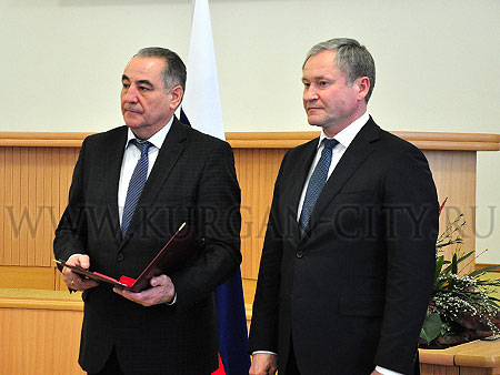 Особые слова благодарности в этот день были высказаны в адрес жителей региона, которые внесли особый вклад в социально-экономическое развитие области. Ряд из них был отмечен медалью ордена «За заслуги перед Отечеством» II степени, Благодарностью Президента Российской Федерации и другими наградами. Два наших земляка - первый Губернатор Курганской области Олег Богомолов и профессор КГУ Валентина Фёдорова были удостоены звания «Почетный гражданин Курганской области».