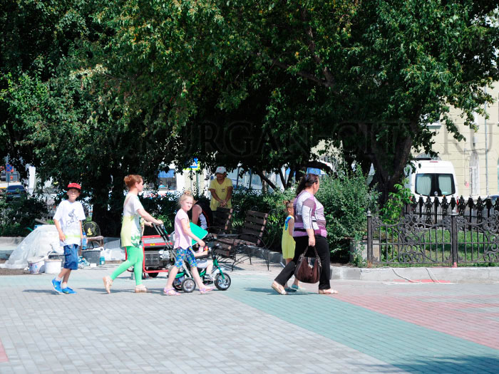 Работы на данном участке, как могли убедиться участники выездного заседания, также близятся к своему завершению. Территория сквера, где установлен памятник основателю Кургана, вымощена плиткой, для удобства горожан установлены скамейки и урны, а к 11августа сквер украсит еще и красивый кованый герб.