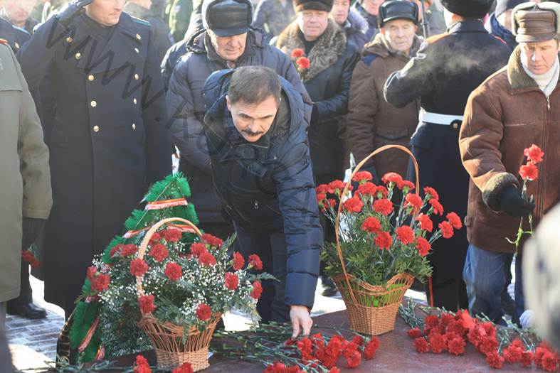 Во время митинга отмечалось, что на чугунных плитах Мемориального комплекса города Кургана отлиты более 8-ми с половиной тысяч имен курганцев, кто погиб во время Великой Отечественной войны. В знак глубокого уважения присутствующие почтили память павших защитников Отечества минутой молчания, возложили венки и цветы к Вечному Огню.