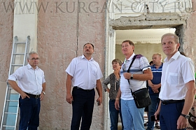 Руководители города продолжают контролировать ремонт Дворца детского (юношеского) творчества. В очередной планерке, которая прошла сегодня на объекте, приняли участие Глава Кургана Сергей Руденко и первый заместитель Руководителя Администрации города Андрей Жижин.
