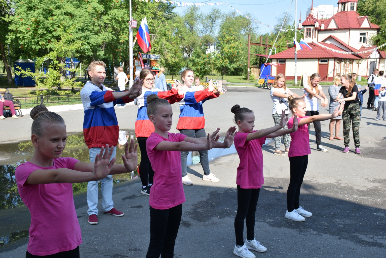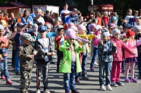 Мероприятие продолжилось культурно-спортивной программой. Со знаменательным событием горожан поздравили лучшие артисты и творческие коллективы города. Все желающие приняли участие в спортивной разминке, которая подняла настроение и зарядила энергией. Ребята из школы современного танца «Парадокс» предложили курганцам заняться небольшой тренировкой под названием «Генеральная уборка». Подвижная и зажигательная программа завершилась танцевальным флешмобом, в ряды которого вошли как взрослые, так и дети.