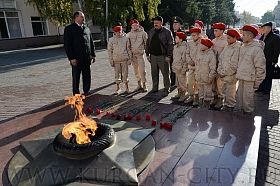 Сегодня, 16 октября, у Вечного огня встретились горожане разных поколений. Перед бывалыми комсомольцами и сегодняшней молодёжью Кургана выступил Глава города Сергей Руденко. Он подчеркнул, что история – основа будущего, поэтому минувшие события и людей, отдавших жизнь во время войны во имя родного города и страны, забывать нельзя.