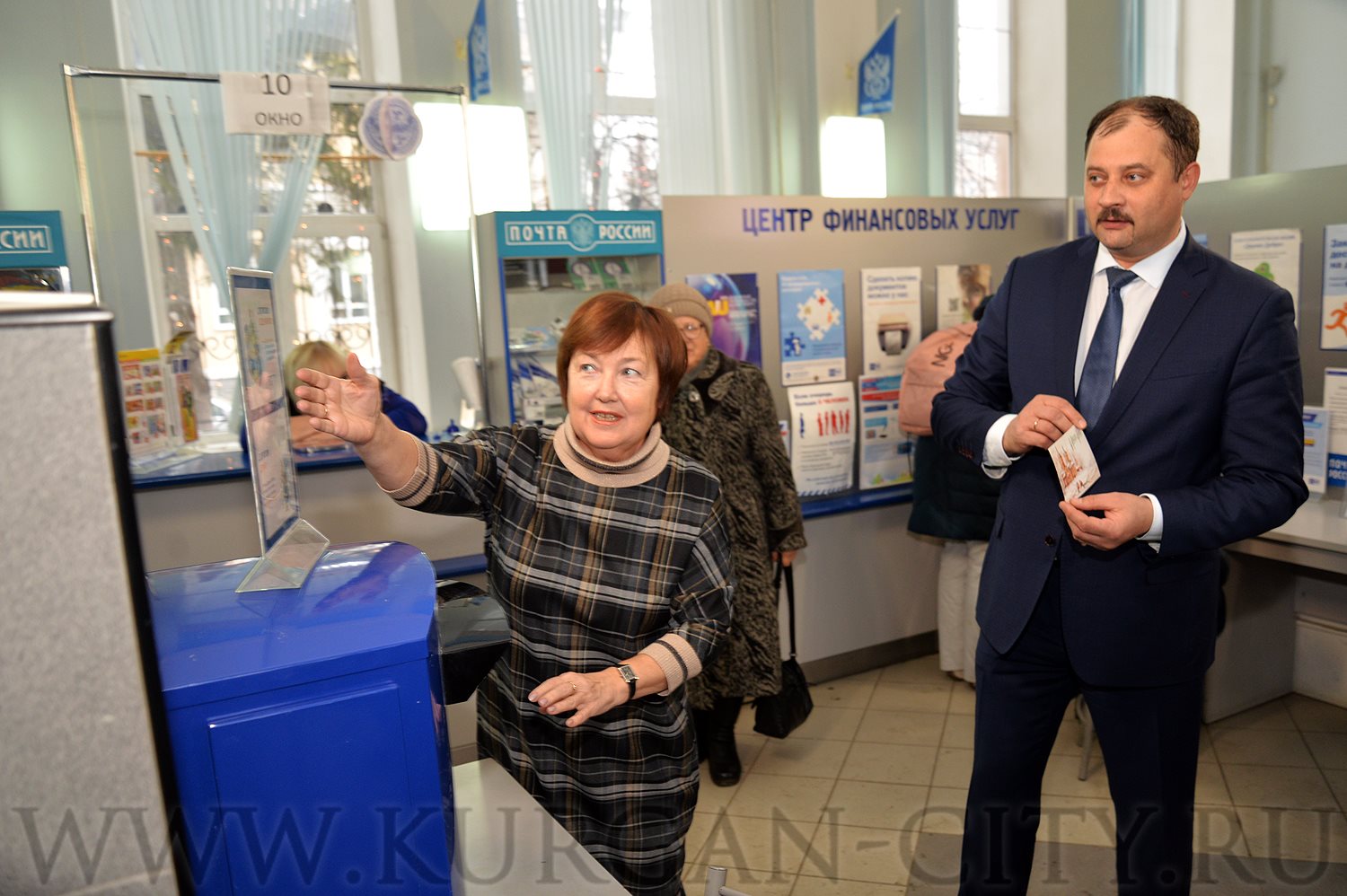 Сегодня в здании центрального почтамта состоялась необычная акция под названием «С Новым годом из Кургана!», которая вызвала небывалый интерес у жителей города. Всем посетителям предлагалось поздравить своих близких с предстоящими праздниками и отправить в любую точку России красочные открытки с видами Кургана. В акции принял участие Глава города Сергей Руденко.