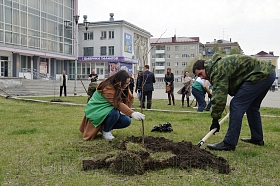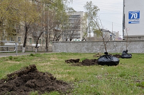 Саженцы уже крепкие и рослые. Вокруг их корневой системы - плодородная земля. Для высадки понадобились пара лопат и желание помочь родному городу. Вместительные лунки уже заранее подготовили волонтеры Курганского Дома молодежи.