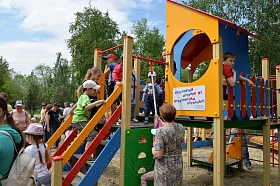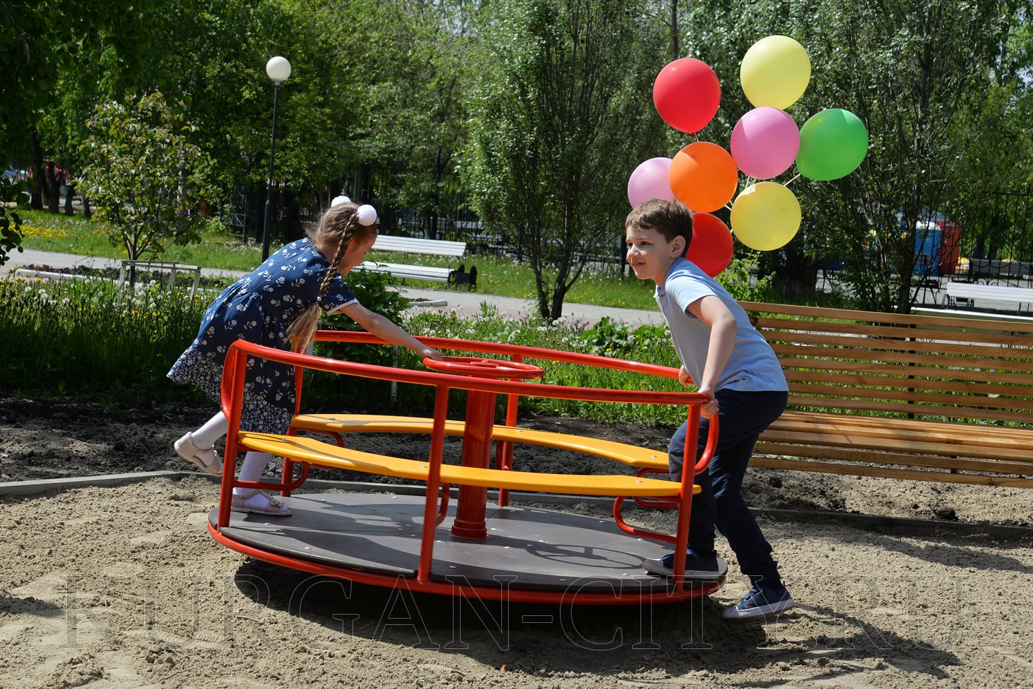 Право торжественно открыть площадку предоставили виновникам торжества – детям. Валерия и Арсений разрезали красную ленту и смогли первыми покататься на карусели. На праздник, посвященный открытию новой детской площадки, в городской сад пришли и воспитанники курганских детских садов. Для них была специально подготовлена веселая игровая программа с клоунами, конкурсами и играми. Её организовали сотрудники городского Дома народного творчества.