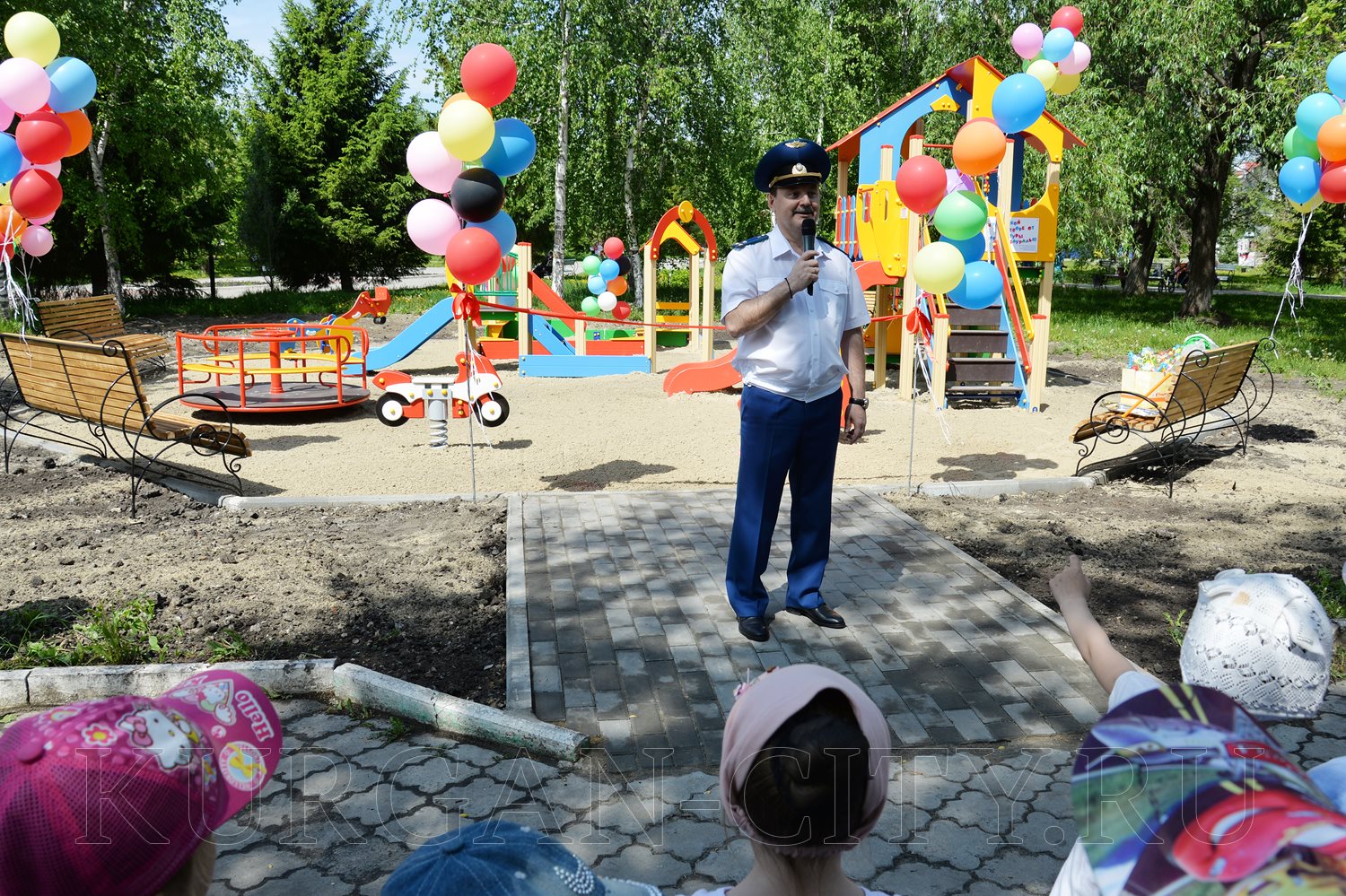 К приветствиям присоединился исполняющий обязанности прокурора Курганской области Олег Седельников, подчеркнув, что приобретение детской площадки - это общий вклад сотрудников прокуратуры в общее дело развития и благоустройства города Кургана.