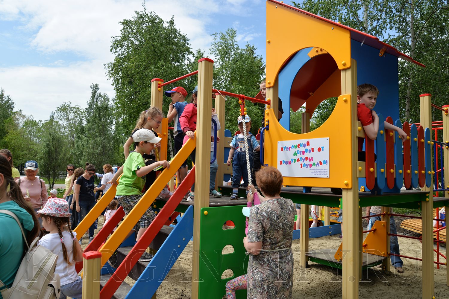 Игровая площадка появилась в городском саду накануне Дня защиты детей. Она была приобретена и установлена на личные денежные средства сотрудников прокуратуры Курганской области.