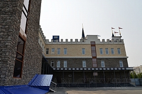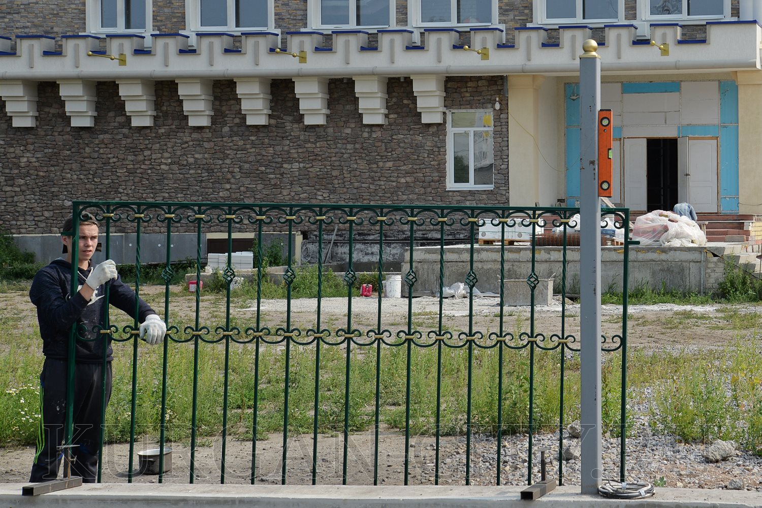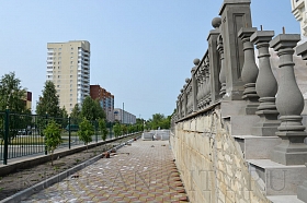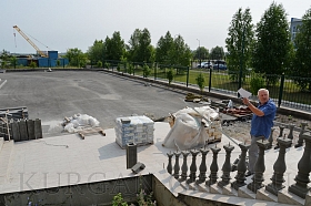 Владимир Станиславович отметил, что реализация проекта осуществляется в плановом режиме. В настоящее время ведутся внутренние отделочные работы культурно-досуговой части центра, производственная часть полностью готова. Параллельно с внутренними работами благоустраивается прилегающая территория, где уже оформлена цветочная клумба. Как уточнил предприниматель, зимой на этом месте будет установлена новогодняя елка. Идет обустройство въездных ворот и входной группы здания, где практически завершена установка балюстрады. Владимир Босов подчеркнул, что в скором времени территорию центра украсят декоративные скульптуры в виде рыб и лягушек, которые будут смонтированы рядом с зоной фонтанов. В планах предпринимателя на текущий год – выполнить архитектурную подсветку здания. Также руководство ООО «ТД «Каприз» намерено благоустроить перед территорией культурно-досугового центра просторную парковку, которой смогут воспользоваться не только посетители, но и все желающие.