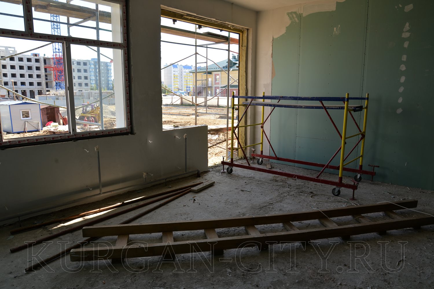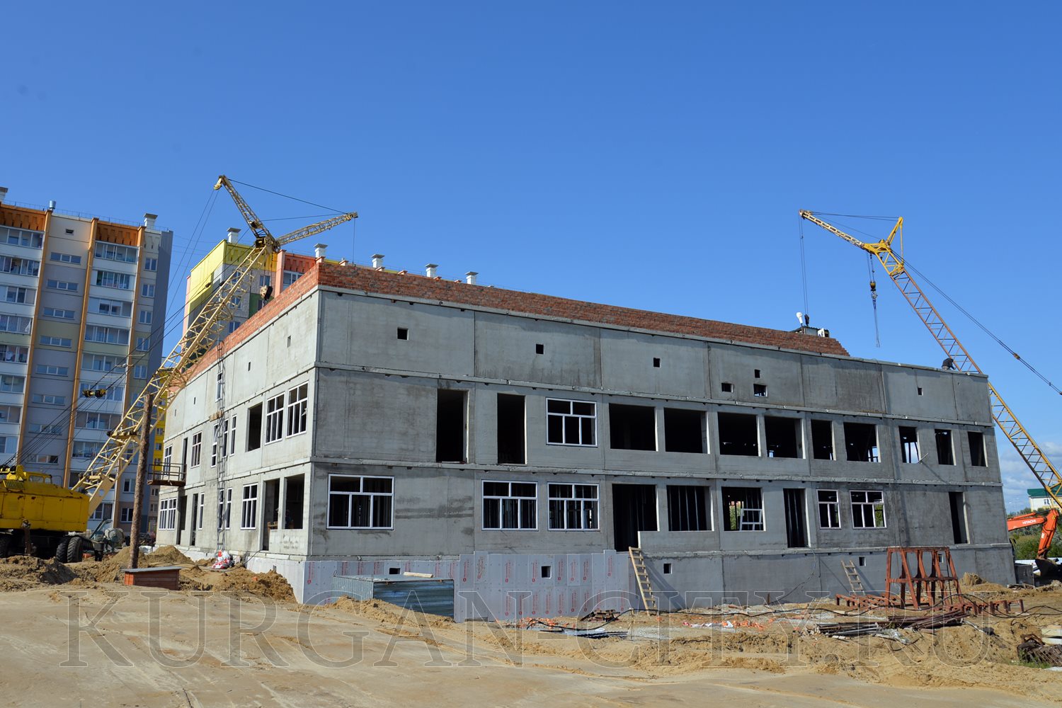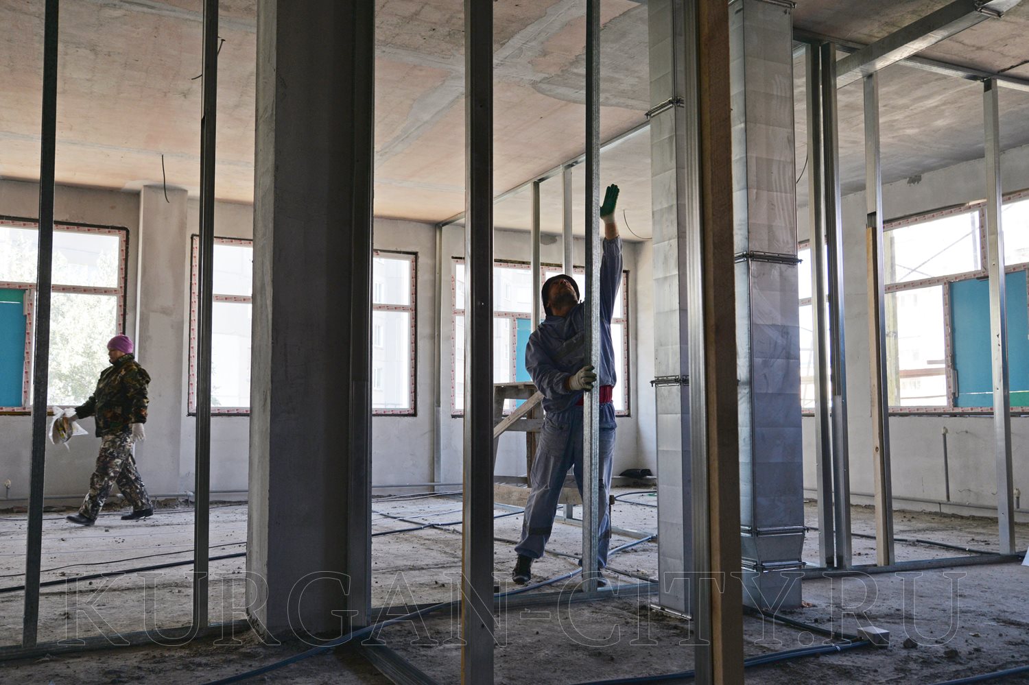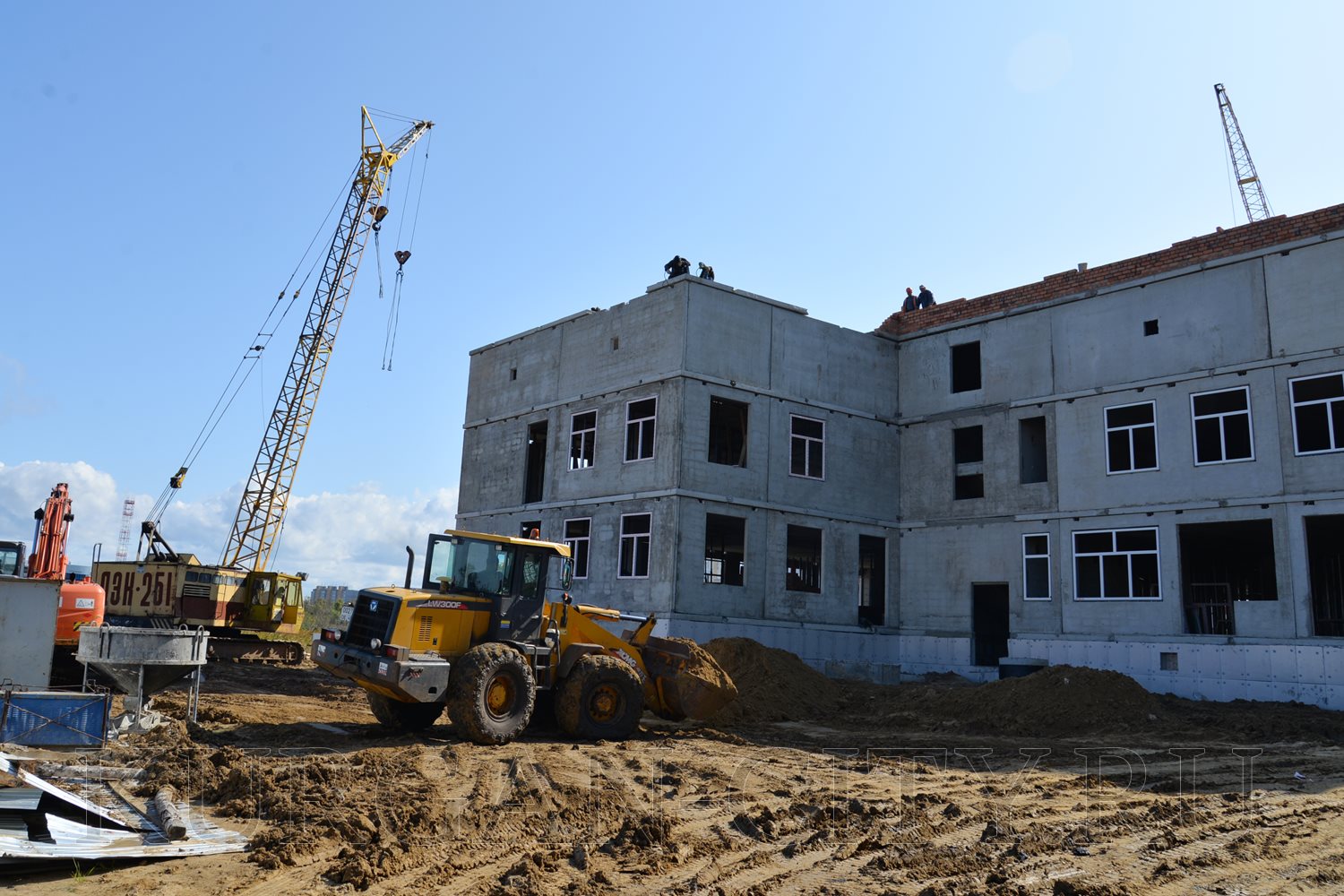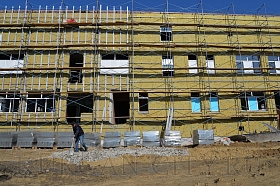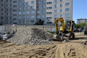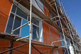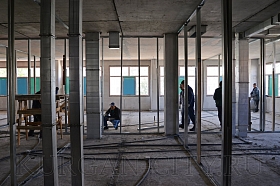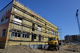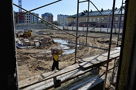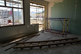 В 4-ом микрорайоне монтаж коробки здания - на завершающей стадии. Ведется работа по обустройству кровли. Внутри помещения выполняется монтаж перегородок, идет прокладка электропроводки.