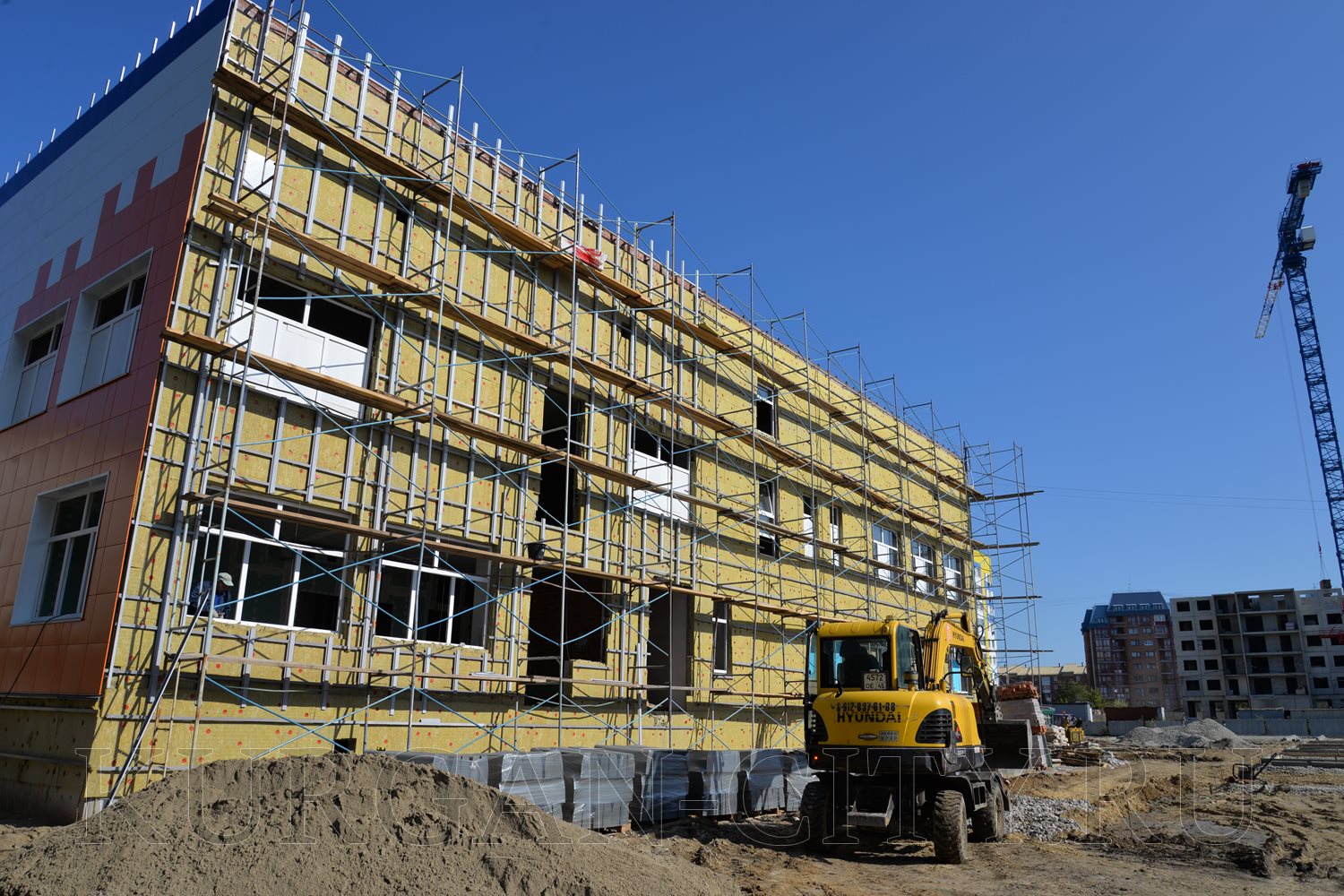 Выездное совещание продолжилось на стройплощадках новых детских садов в 5-ом и 4-ом микрорайонах Заозерного жилого массива. В 5–ом микрорайоне в настоящее время ведется утепление коробки здания; строители обшивают фасад современными материалами, приступают к обустройству кровли.