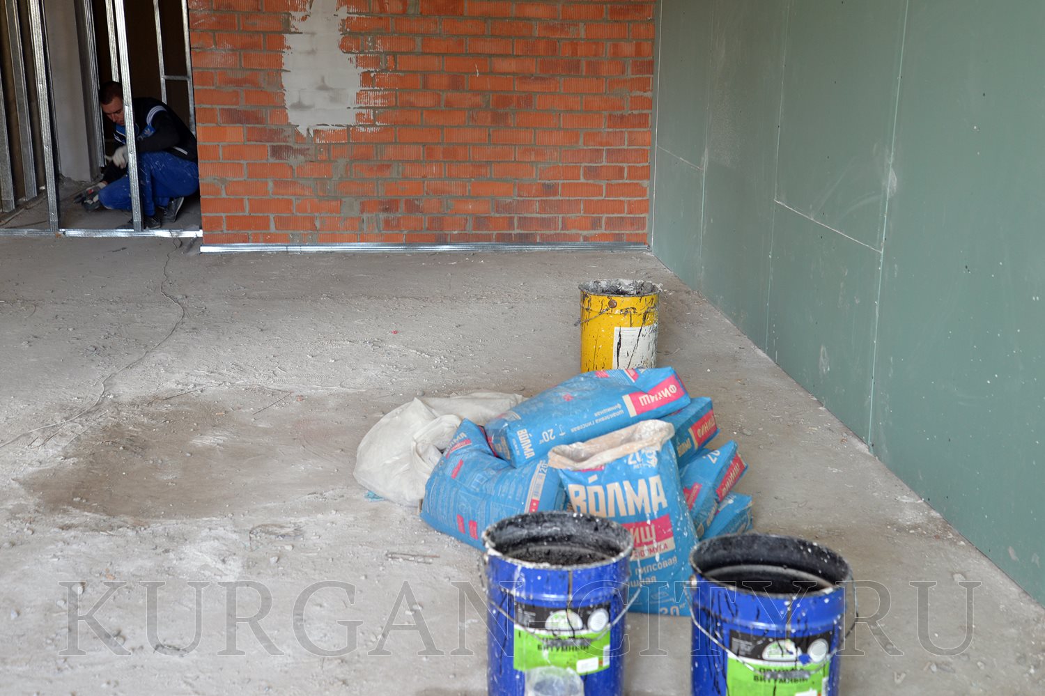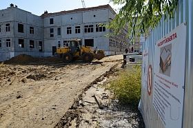Параллельно с этим внутри будущего детского сада ведутся работы по монтажу перегородок из легких конструкций. На объекте работают электрики, сантехники и вентиляционщики; начаты работы по благоустройству территории.