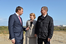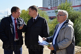 Как ведется строительство детских садов в Заозерном и улицы Мальцева – сегодня проверил Глава города Кургана Андрей Потапов. Вместе со своим первым заместителем Андреем Жижиным, директором Департамента архитектуры, строительства и земельных отношений Еленой Ивановой, директором городского Управления капитального строительства Андреем Чудаковым он побывал на строящихся объектах, проинспектировал ход работ и побеседовал с подрядчиками.