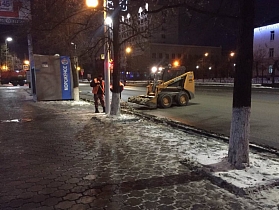 Кроме того, в течение сегодняшнего дня будет произведена обработка площади основного проезда технической солью. На улицах города будет произведено подметание и сгребание снега, очистка обочин от снега.