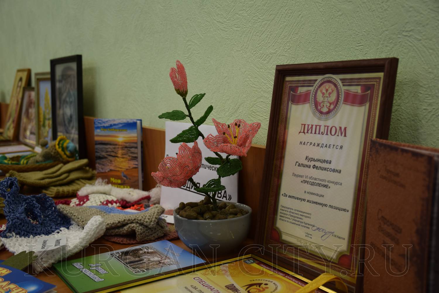 В рамках дня открытых дверей работала выставка декоративно-прикладного творчества. Также здесь были представлены достижения Курганской местной организации Всероссийского общества слепых: кубки, медали, дипломы и грамоты.