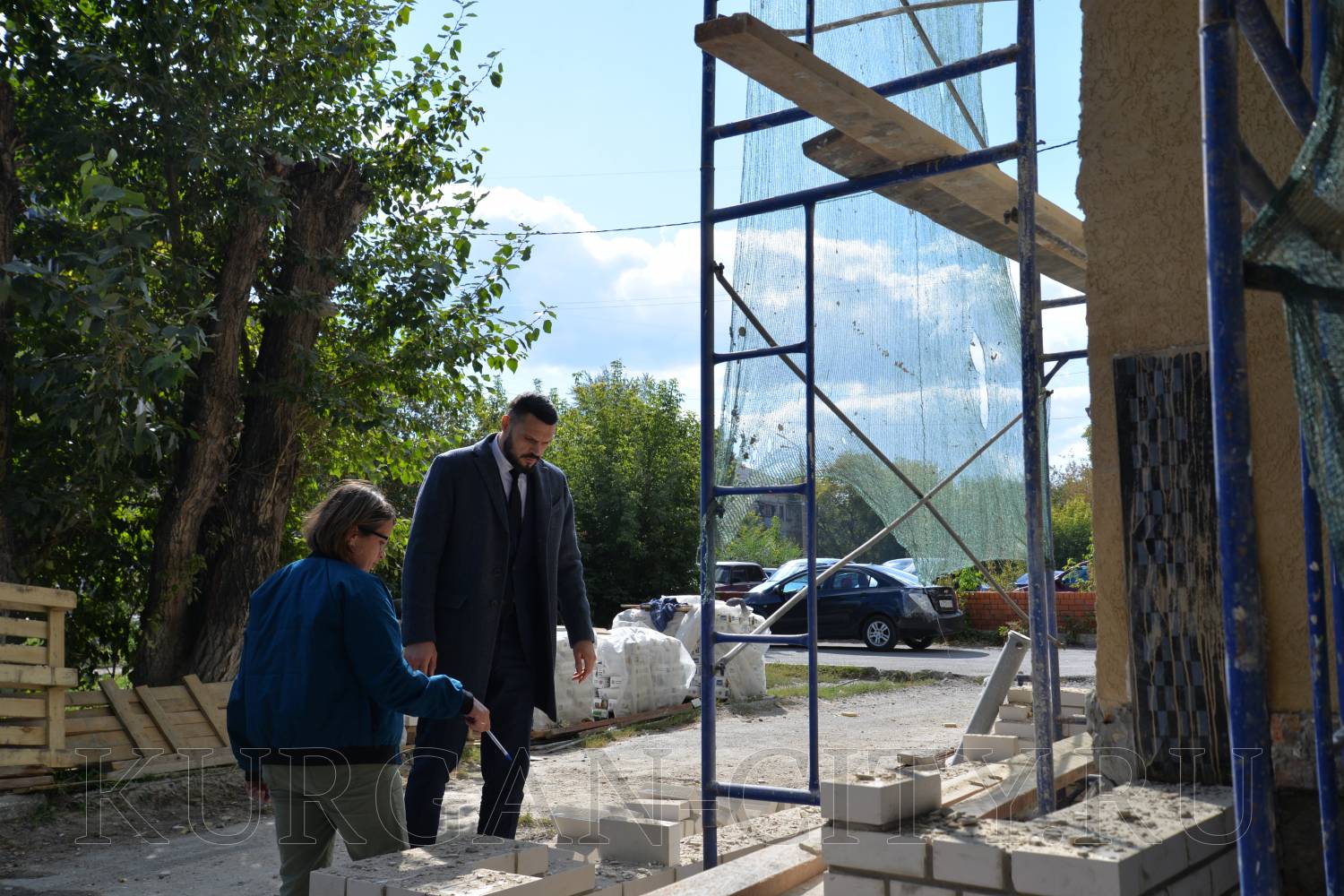 Эта же задача поставлена перед подрядной организацией ООО «А-Строй», которая ремонтирует фасад дома № 145 по улице К. Мяготина. Основные фасадные работы произведены со двора. Сейчас ведутся со стороны улицы К.Мяготина. В ходе рабочего объезда подрядчику было указано на наличие недочетов в выполненной работе, которые необходимо исправить, а также убрать в ближайшее время скопившийся строительный мусор, который мешает проходу граждан по тротуару.