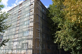 Кипит работа еще на одном объекте – по адресу: пр. Машиностроителей, д. 11. Вместе с директором ДЖКХ Романом Медведевым ход ремонта контролируют и специалисты обслуживающей организации МУП «Прометей». На объекте трудится ИП Корытова Н.А. Капитальный ремонт фасада здания включает в себя ремонт отделочного слоя и его покраску, козырьков над входом в подъезды, входного крыльца со стороны главного фасада здания, а также восстановление кирпичной кладки и козырька входа в подвальное помещение со стороны ул. Дзержинского. Среди задач, стоящих перед подрядчиком - ремонт продухов и отмостки, а также устранение имеющихся трещин в кирпичной кладке. Срок окончания работ на данном объекте – до 10 октября. Но, как обещает подрядчик, при сохранении набранных темпов работы могут быть завершены раньше запланированного срока.
