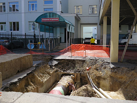 В ходе выездного совещания директор Департамента ЖКХ Роман Медведев также проконтролировал ход ремонтных работ по замене трубопровода в районе дома № 13 по улице Криволапова: «Здесь требовалось переложить трубу, чтобы в будущем, при укладке нового асфальта, не было необходимости проводить на данном участке повторные раскопки. ПАО «КГК» и АО «Водный Союз» предоставляют нам план мероприятий на следующий год, чтобы мы синхронизировали свои действия с дорожниками – сначала меняли сети, а потом делали дорогу».