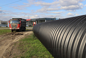 Одновременно с монтажом канализационной трубы подрядная организация ведёт работы по обустройству камер на сетях канализации. Две камеры полностью смонтированы, две остаются в работе, в том числе одна – на Дзержинском кольце.