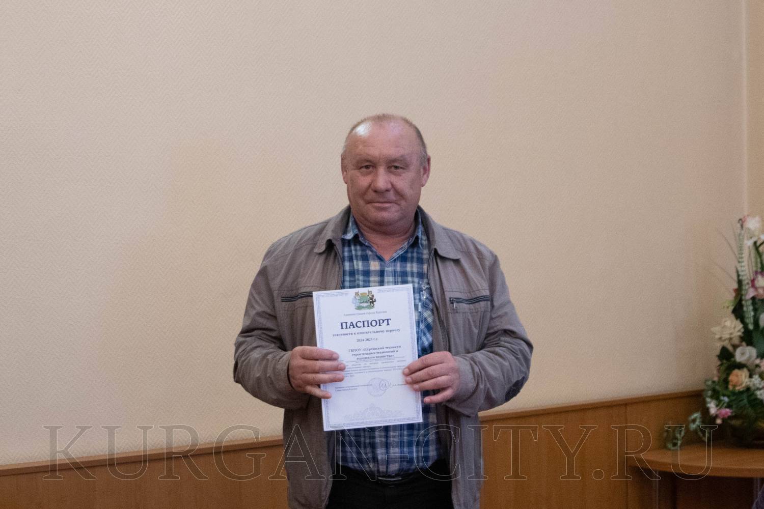 Паспорта готовности к новому отопительному сезону получили департамент социальной политики администрации города Кургана, Курганский областной онкологический диспансер, Курганский государственный колледж, Курганская областная психоневрологическая больница, Курганский областной центр медицины катастроф, Курганская областная станция переливания крови, Курганский областной кожно-венерологический диспансер, Курганская областная детская клиническая больница им. Красного Креста, Курганский областной госпиталь для ветеранов войн, Курганский техникум строительных технологий и городского хозяйства, Курганский областной кардиологический диспансер, Курганская специальная (коррекционная) школа № 8, Курганская больница скорой медицинской помощи, Курганская школа-интернат № 60, Курганский педагогический колледж, Курганский технологический колледж им. Н. Анфиногенова.