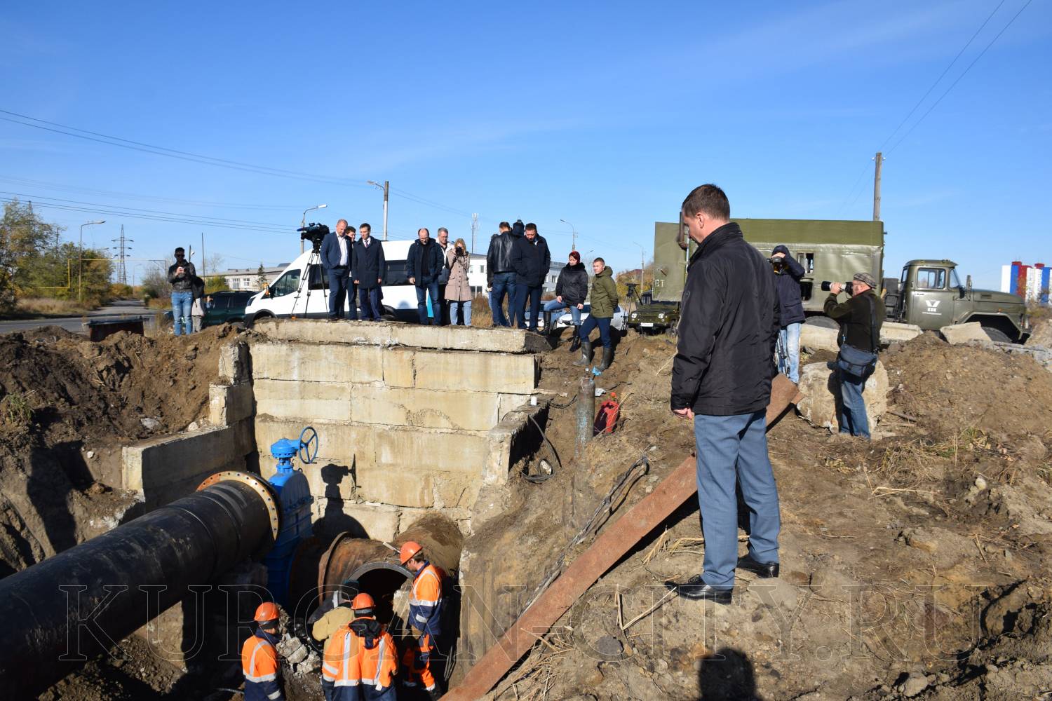 Работы по врезке нового участка водопровода, для которых потребовались остановка Арбинских очистных сооружений и отключение воды в городе Кургане, ведутся в плановом порядке. На место присоединения сегодня выехали Глава города Кургана Андрей Потапов, директор Департамента жилищно-коммунального хозяйства Александр Гонцов и руководитель АО «Водный Союз» Владимир Овсянников.